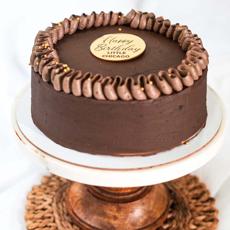 Satisfy your cravings with our decadent Dark Chocolate Cake, lavishly filled with our signature homemade raspberry compote and layered with luxurious chocolate ganache.